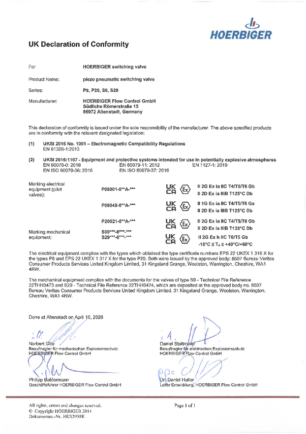 ピエゾ切替弁用 タイプ S9; S29; P8 および P20
